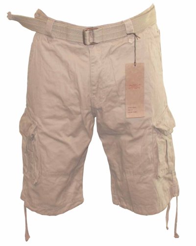 Men Cargo Pocket Shorts Khaki Beige, Inner Drawstring Waist, Belt Included, Avail Size 30-44 Best